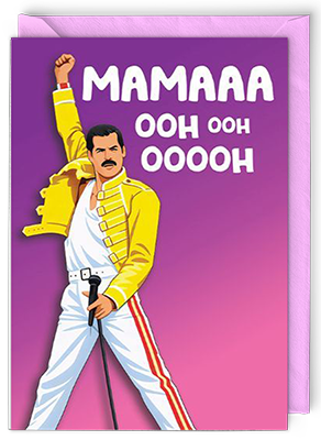 Give your mum a Mother's Day card that truly rocks. This A5 masterpiece showcases Freddie Mercury in his unmistakable yellow jacket, dramatically delivering "MAMAAA OOH OOH OOOOH" across a stunning bright pink and purple backdrop. With a blank inside, you've got the perfect canvas to pen your own heartfelt message. The matching pink envelope adds that extra touch of polish. Ideal for the Queen fan who appreciates wit, nostalgia, and a card that's anything but ordinary. Make this Mother's Day unforgettable with a greeting that hits all the high notes.